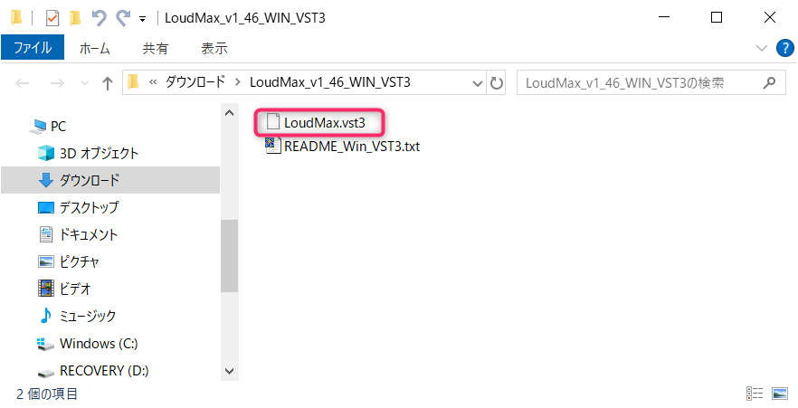 ダウンロードしたファイルを解凍してでてきたVSTファイルをOS指定のフォルダに移動します。